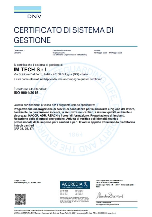L’organico è integrato da figure esperte in settori specialistici, laboratori qualificati, partner e strutture in rete sul territorio, che ne fanno un sistema di servizi sempre vicino al cliente. Chi si affida ad Im.Tech verrà seguito da un unico referente che collaborerà in maniera sinergica con tutte le figure interne specialistiche, al fine di garantire una consulenza sempre aggiornata e pertinente alla necessità della richiesta.